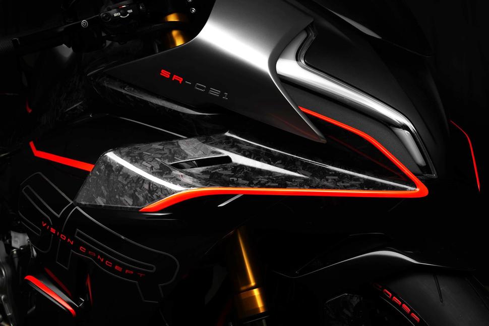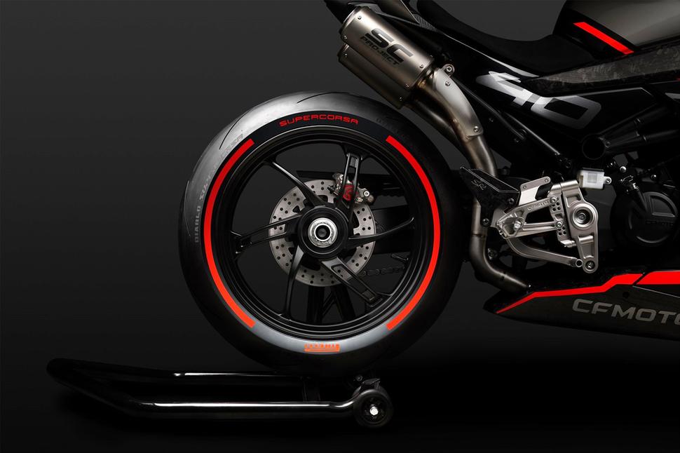 16 октября 2021 года CFMoto анонсировали в шикарную предстоящую модель - спортбайк, не похожий ни на одну из более ранних моделей китайского бренда. Подробностей о мотоцикле пока не сообщается, за вычетом того, что над ним работало европейское конструкторское бюро компании. При ближайшем рассмотрении рендеров становится очевидно, что будущая новинка, по всей видимости, входит в линейку спортбайков SR, состоящую на данный момент из 300SR и 250SR. Однако, если судить по дизайну этого мотоцикла, почти наверняка он будет намного производительнее, чем одноцилиндровая 250-ка. На приведённых изображениях видны различные гоночные особенности новой модели - агрессивные клипоны, высокие и вынесенные далеко назад подножки и даже красивый односторонний маятник. А вот каким мотором CFMoto планирует оснастить мотоцикл, пока неясно, но не исключено, что речь идёт о моторе, разработанном KTM. Если это действительно так, то скорей всего это будет 800-кубовая рядная двойка, которая уже стоит в турэндуро CFMoto 800MT, или того лучше - 990-кубовый V-твин, известный по KTM 990 Super Duke, на который CFMoto получили права в результате заключения партнёрского соглашения с австрийским концерном.