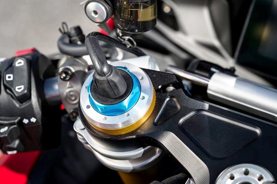 И, наконец, опции, которые увеличат и без того приличный ценник Ducati Panigale V4 S - примерно 34000 долларов. Кстати, некоторые из опций уже были установлены на тестовый мотоцикл. Хотите верьте, хотите нет, но в каталоге для Panigale V4 доступны улучшенные тормозные компоненты - "гоночные" суппорта с воздухозаборниками, которые помогают эффективнее рассеивать тепло, и соответствующие 338-миллиметровые тормозные диски (на 8мм больше штатных) с охлаждающими рёбрами. Нужны ли Panigale более совершенные тормоза? Только если очень хочется и можете себе это позволить.