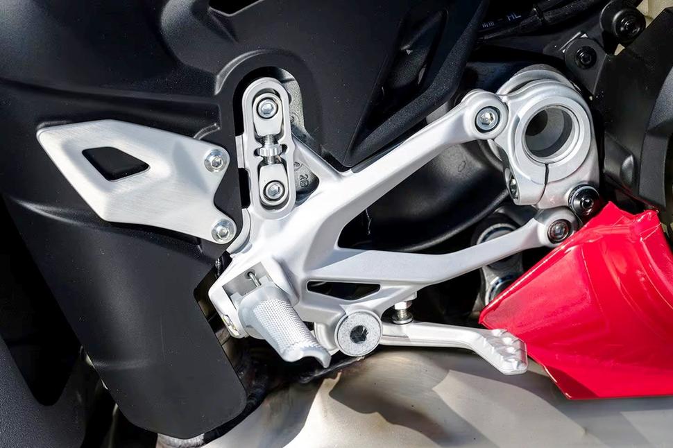 К чести Ducati, несколько аспектов Panigale V4 были переработаны исключительно с учётом невероятных возможностей современной резины. Всё снижение боковой жёсткости, например, помогает мотоциклу более мягко преодолевать неровности в глубоких наклонах. Клипоны мотоцикла стали выше, чтобы райдерам было удобнее держаться на торможениях, а подножки были сдвинуты на 10мм внутрь, чтобы дать больше углов наклона без перемещения их выше.