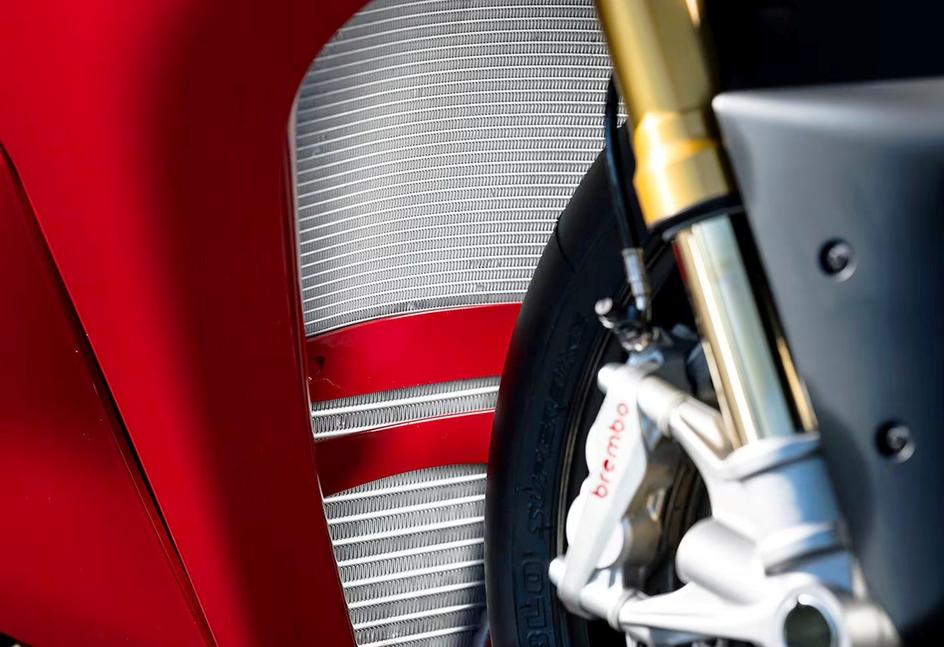 Весь этот табун осаживают и удерживают новейшие и лучшие суппорта Brembo под названию Hypure, которые легче на 60г и лучше охлаждаются, чем прошлый вариант. Который, кстати, был практически идеальным, но Brembo есть Brembo, а Ducati есть Ducati, они всегда стремятся к лучшему.