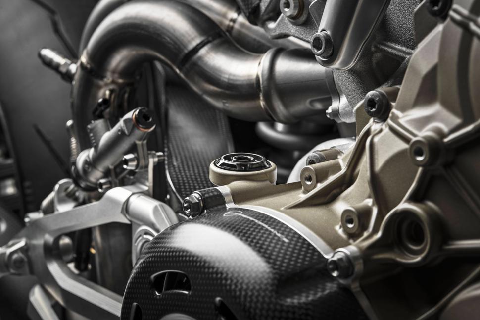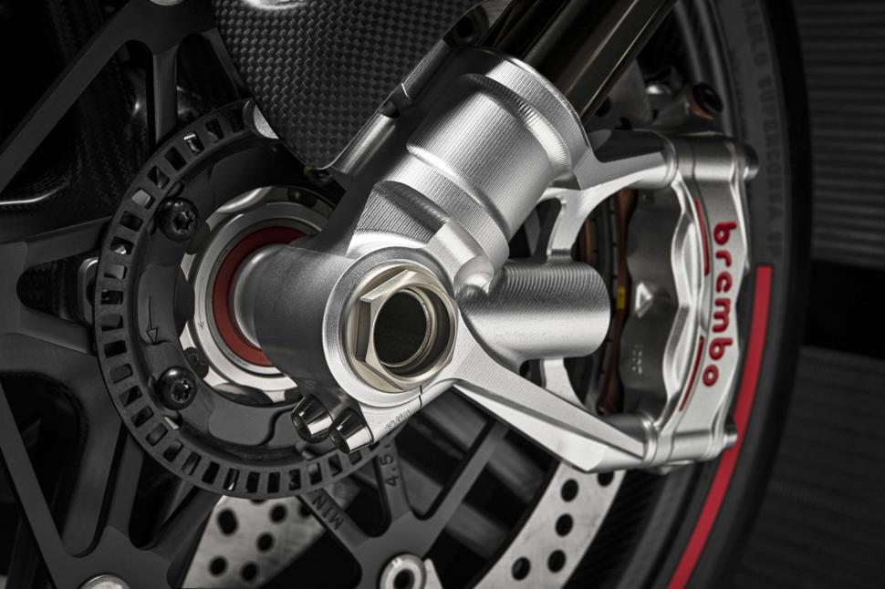 Из других особенностей отметим пятидюймовый TFT-дисплей, 43-ю перевёрнутую вилку Öhlins NPX25/30, амортизатор Öhlins TTX36, суппорта Brembo Stylema R, изготовленные на ЧПУ рычаги и резину Pirelli Diablo Supercorsa SP.