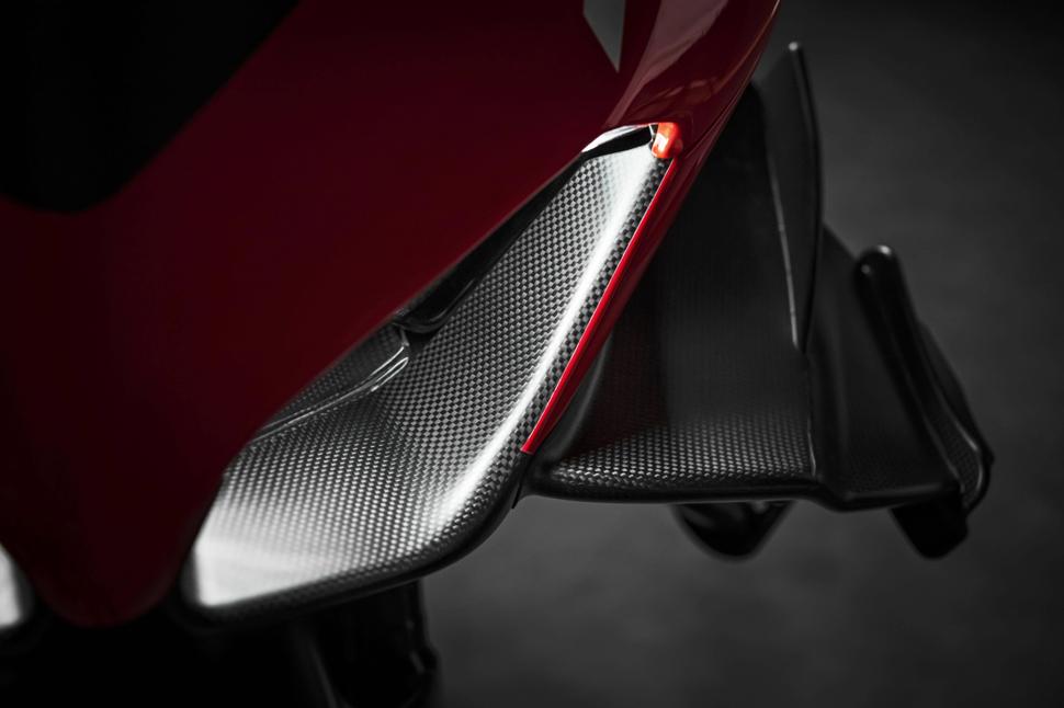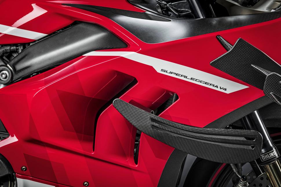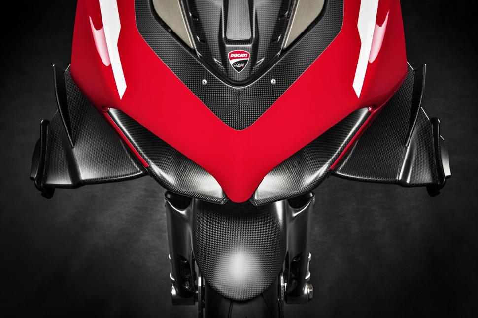 Аэродинамический обвес Superleggera превосходит не только доступные опции для Panigale V4 и V4 R, но и даже нынешние MotoGP-шные модели Ducati. Удивительные двойные крылья основаны на Desmosedici GP16, который имел более высокую аэродинамическую эффективность, чем сегодняшние спортбайки, для которых установлены более жёсткие рамки. По данным Ducati, "биплановые" крылья Ducati Superleggera V4 обеспечивают прижимную силу в 50 кг на 270 км/ч, а крылья Panigale - лишь 30 кг.