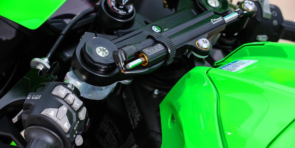 Разница проявилась в том, что мотоцикл стал наклоняться чуть быстрее, а выходить из поворота с меньшим усилием райдера. И это хорошо. Пусть шасси Kawasaki не даёт такой уверенной обратной связи, как, например, у Aprilia RSV4, но оно очень неплохо сбалансировано. Чуть помягче вилку, чуть пожёстче зад - и развесовка довольно ощутимо смещается вперёд.