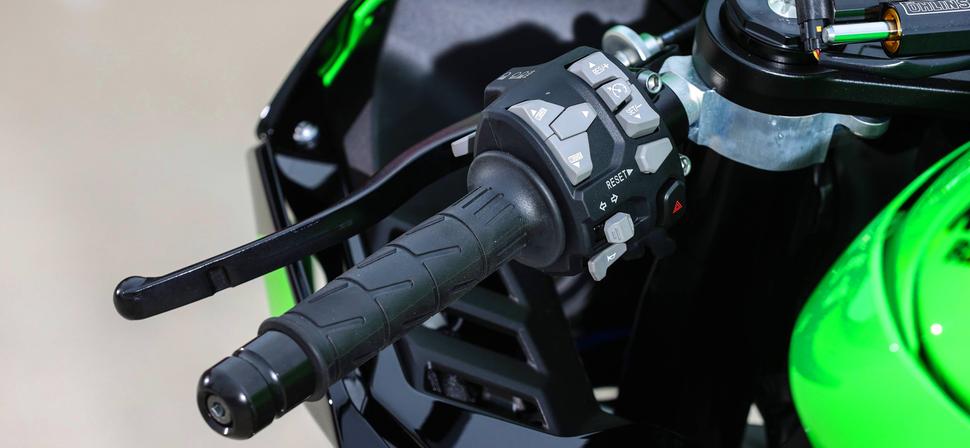 Электроника мотоцикла управляется при помощи новой 4,3-дюймовой полноцветной TFT-панели с переключаемым фоном (чёрным/белым) и двумя режимами, гоночным и дорожным. Дисплей отображает обычные для приборные панели показания типа спидометра, тахометра, передачи, а кроме того, обеспечивает беспроводную связь по Bluetooth со смартфоном для совместной работы с приложением Kawasaki Rideology, в котором отображаются расширенные параметры вплоть до даты последнего ТО и напоминания о грядущей замене масла.