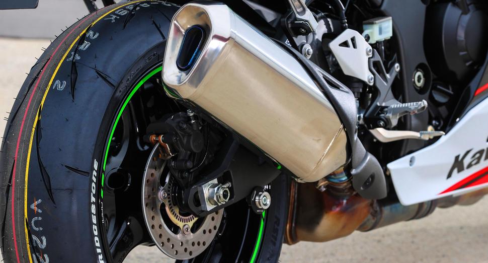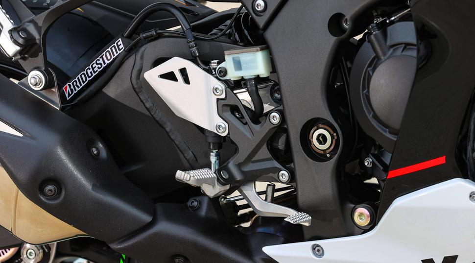 Kawasaki ZX-10RR оснащается более агрессивными распредвалами, улучшающими производительность на высоких оборотах. Все четыре клапанные пружины отфрезерованы для более точного прилегания и лучшей работы на высокой скорости вращения двигателя. Опять же в пользу высоких оборотов упразднили впускные воронки переменной длины и оснастили двигатель 5-миллиметровыми воронками на все 4 цилиндра. И, наконец, RR в стоке оснащается армированными сталью тормозными магистралями и семилучевыми коваными алюминиевыми колёсными дисками Marchesini, обутыми с завода в Pirelli Supercorsa SP.