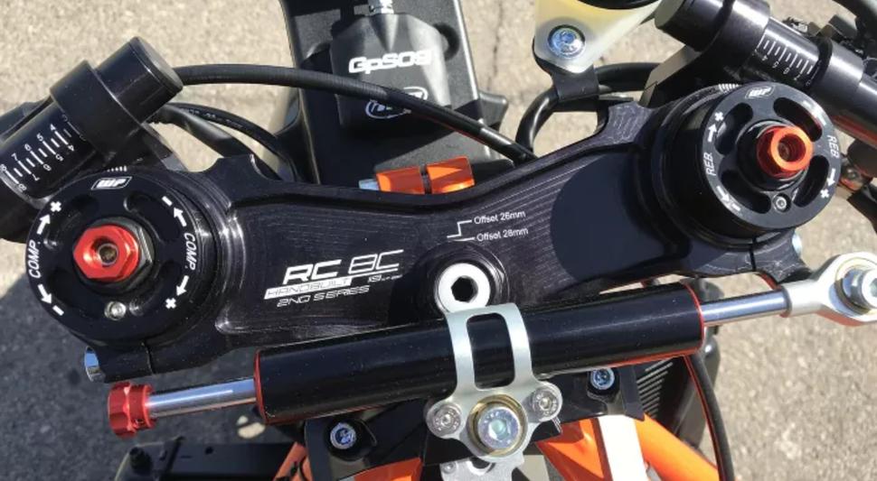 Но оживает он после 7 тысяч, и хотя в принципе можно переключаться сразу после этой цифры (и многие так и делают, как само собой разумеющееся), намного веселее и эффективнее пользоваться преимуществами повышенной производительности на верхах. KTM RC 8C крайне охотно встаёт на заднее, но на всякий случай в ЭБУ имеется функция анти-вилли, которая чрезвычайно эффективно удерживает переднее колесо на треке. Только стоит подзатянуть рулевой демпфер, чтобы не болтало клипоны на ускорении при выходе из последнего поворота Валенсии.