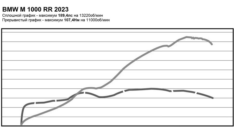 999-кубовая 16-клапанная рядная четвёрка с технологией ShiftCam уже бывала на этом диностенде в версии M 1000 RR 2022 года. Но несмотря на отсутствие механических изменений хотелось прогнать на стенде и вариант 2023 года, чтобы сравнить их в цифрах. На весах BMW M 1000 RR показал 196кг, а на диностенде выдал пиковые 189,4лс на 13220об/мин и 107,4Нм тяги на 11000об/мин. Для сравнения, версия 2022 года выдала 179,2лс на 13960об/мин и 103,5Нм на 9480об/мин. Учитывая отсутствие механических отличий между двигателями 2022 и 2023 версии, это весьма любопытно, поскольку карты ЭБУ, по данным BMW, тоже не менялись.