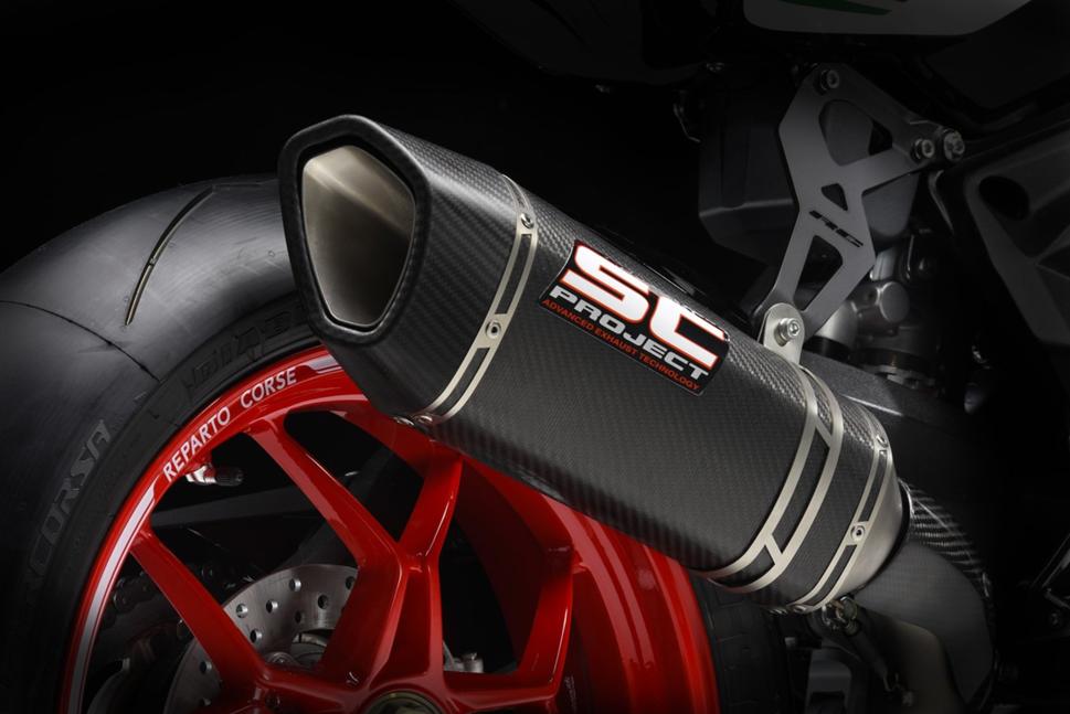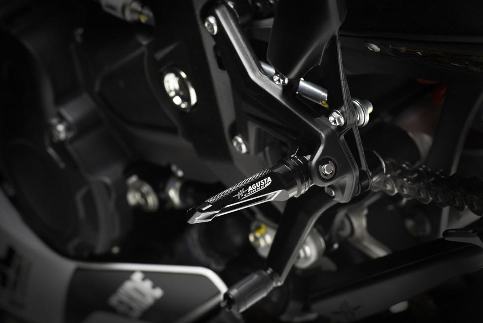 Рядный двигатель объемом 675 см3 выдает 128 лс при 14500 об/мин и 70,91 Нм при 10900 об/мин. Теперь в стандартной комплектации F3 675 RC будет оснащен гоночной титановой выхлопной системой от SC-Project. Она увеличивает мощность до феноменальных 133 лс при 14750 об/мин, ЭБУ был настроен соответственно.