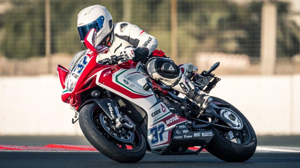 Низкий руль типа клип-он и углубление под топливным баком обеспечивают правильную посадку, удобную для маневрирования и вхождения в крутые повороты. Высоко расположенные подножки позволяют хорошо наклоняться вперед, мотоцикл ощущается очень легким, просто закладывается в повороты. На шасси установлена 43 мм вилка Marzocchi, обеспечивающая 125 мм вертикального хода, а сзади—моноамортизатор Sachs с выносным резервуаром. Работа по остановке доверена дисковым тормозам размером 320 мм спереди и 220 мм сзади с радиальными суппортами Brembo. А за сцепление с дорогой отвечают шины Pirelli Diablo Rosso Corsa 120/70-ZR17 спереди и 180/55-ZR17 сзади на литых алюминиевых дисках. Мотоцикл под завязку забит электроникой и различными системами помощи, которые также были улучшены в 2018 году. Платформа MVICS сочетает электронную ручку газа и корпус дроссельных заслонок с 8-уровневой системой трекшн-контроля. Контроль за подъемом заднего колеса осуществляет система RLM совместно с Bosch 9 Plus ABS.