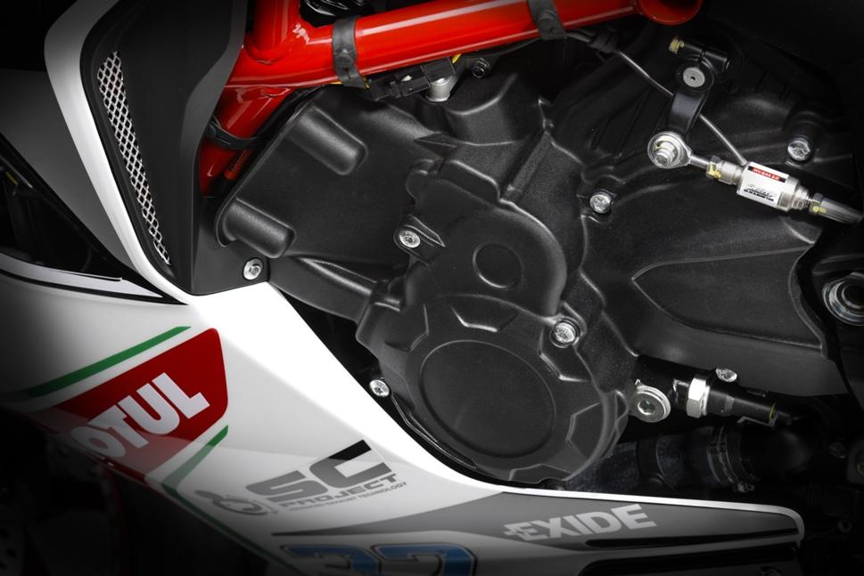 Данный мотоцикл также является первым, на который был установлен коленвал обратного вращения, ранее использовавшийся только на монстрах MotoGP. Инженеры серьезно подошли к вопросу веса: двигатель весит всего 51,7 кг. В результате уменьшается инерция при изменении направления движения, а лучшая сбалансированность обеспечивает лучшую управляемость.