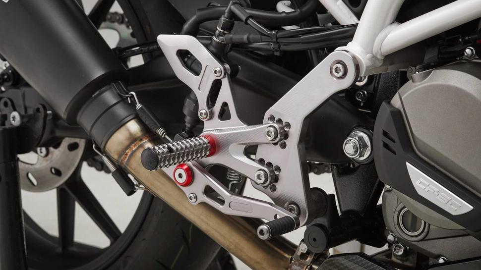 Ещё одна необычная особенность CFMOTO 300SR — это обширный набор опций модификации и кастомизации. CFMOTO Philippines предложит для модели ряд компонентов и аксессуаров, созданных специально для удовлетворения персональных предпочтений владельцев - от эстетических и до тюнинга. CFMOTO обещают, что первыми на Филиппины будут поставлены наборы аксессуаров для модификации эргономики - регулируемые рычаги сцепления и тормоза, а также подножки с ножными рычагами. Следом стоит ожидать появление различных украшательств - крышек бака, наборов болтов, а также защитных дуг и других подобных элементов.