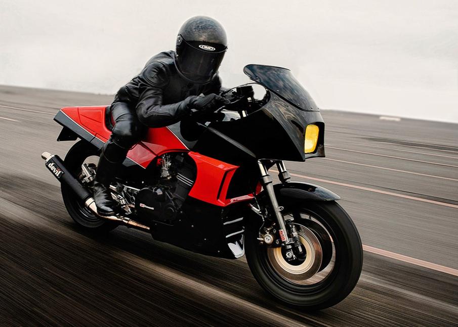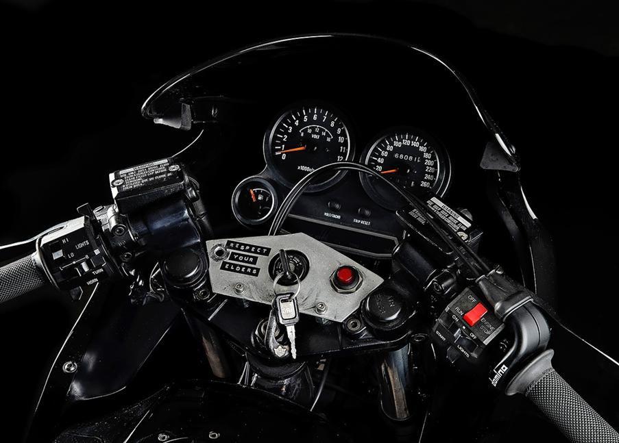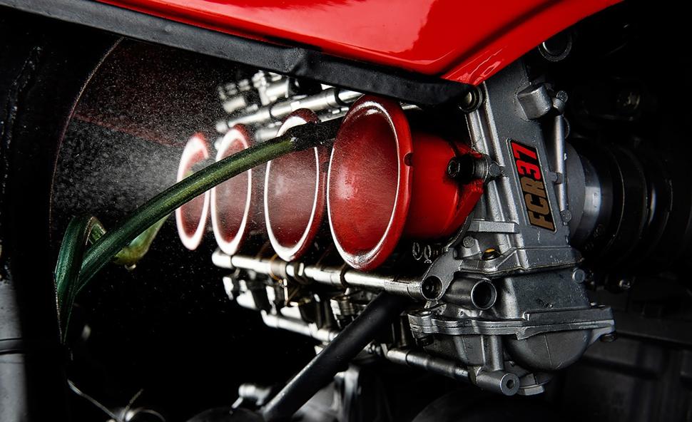 Он доработал кулачки распредвала, заменил шланги охлаждающей системы на силиконовые и установил карбюратор Keihin FCR с велостаксами. Также мотоцикл теперь может похвастаться выхлопной системой 4-в-1 от Devil. Хотя большую часть двигателя не видно под внушительным обтекателем, можете не сомневаться: он подвергся полной переборке.