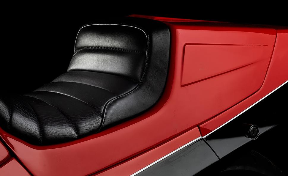 Обвес отправили к мастеру, имеющему огромный опыт в покраске гоночных мотоциклов. Он смог воспроизвести черно-красную расцветку с белыми полосками, нанесенными вручную, как в фильме. (К счастью, Паоло решил не украшать мотоцикл наклейками, как в фильме).