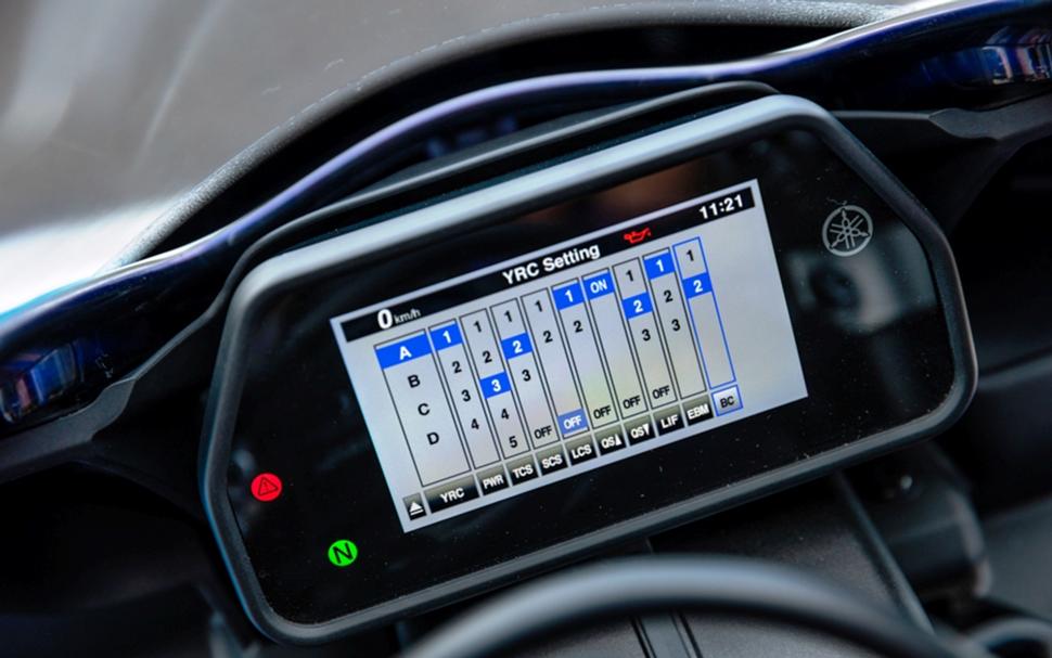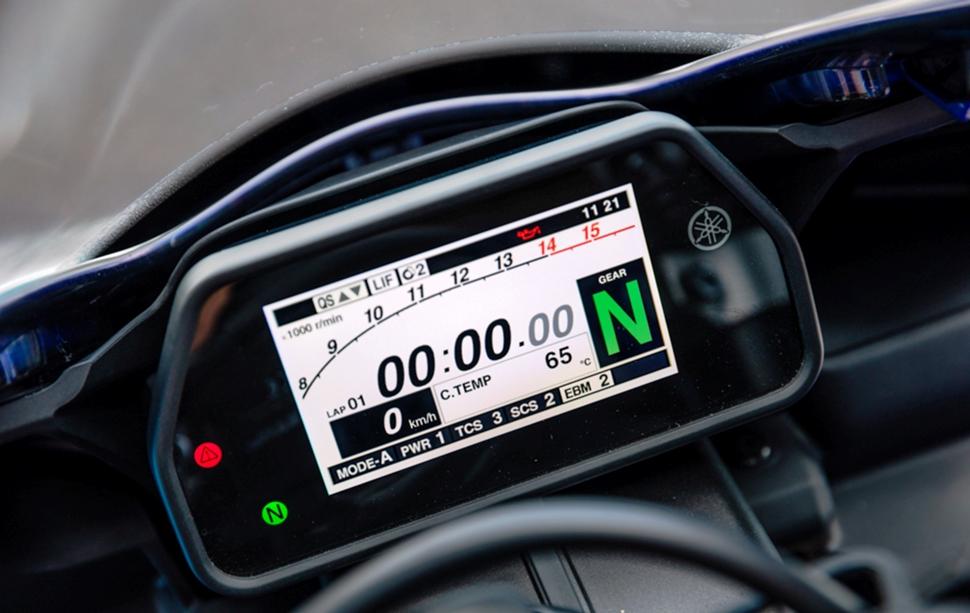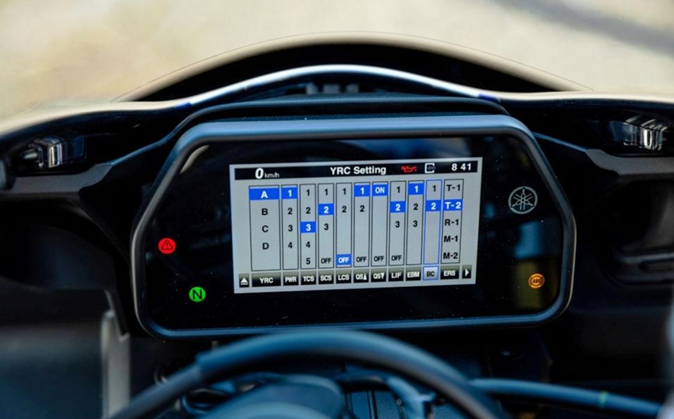Как и раньше, выдающаяся особенность Yamaha R1M - это модуль управления связью (CCU), позволяющий райдеру менять настройки R1M при помощи приложения YRC и смотреть, как хорошо (или плохо) он едет при помощь приложения Y-TRAC, теперь доступного и под iOS. CCU записывает данные с GPS, устройства измерения инерции и ЭБУ двигателя, позволяя анализировать 16 каналов телеметрии каждого круга трека - по сути, давая разбавленную версию тех данных, которые нужны гоночной команде, чтобы помочь их пилоту ехать быстрее. Если вы едете с более быстрым товарищем на ещё одной R1M, вы сможете сравнить данные с обоих спортбайков и выделить сильные и слабые стороны обоих пилотов.