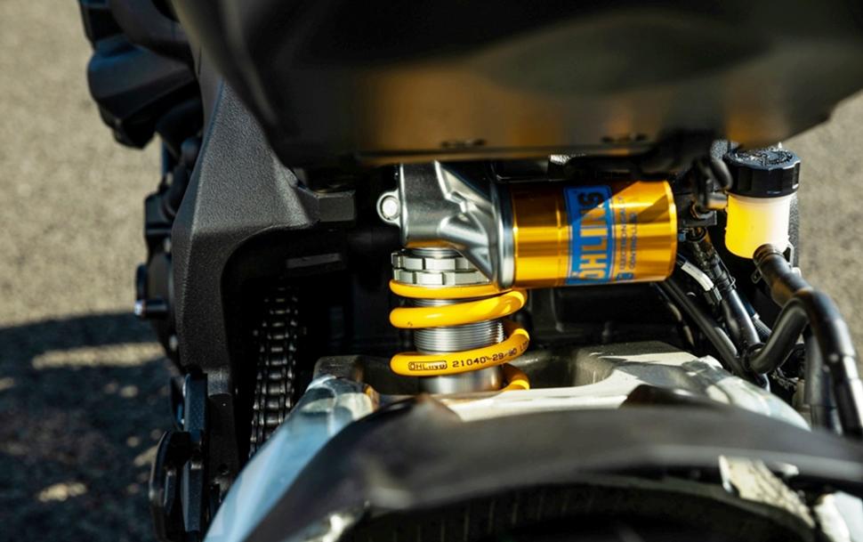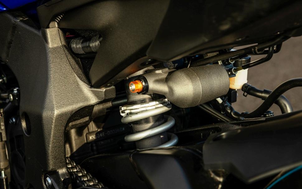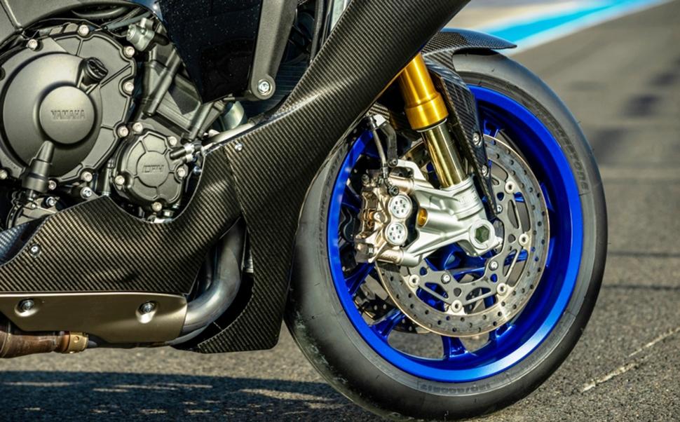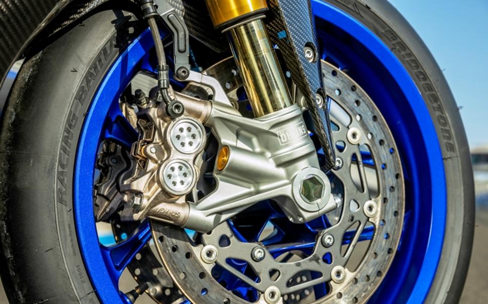 Yamaha R1M - это больше карбона, обновлённая электроника, новейшая электронная гоночная подвеска Öhlins ERS. Как и базовая Yamaha R1, M обновилась не кардинально, а стала развитием текущей версии. Она получила новейшую редакцию вилки NPX ERS от Öhlins с обновлёнными алгоритмами и газовым резервуаром в корпусе вилки - впервые на серийном мотоцикле, по словам Yamaha. Как и у стандартной R1, жёсткость пружин слегка снижена с 21 Н/мм до 20 Н/мм. Конструктивно вилка NPX мало чем отличается от привычных вилок - пружины, наборы шайб, клапана, но клапана здесь имеют электронный привод реального времени, что делает вилку полуактивной. Моноамортизатор ERS тоже был слегка перенастроен под стать вилке, с новым поршнем на сжатие, другими настройками клапанов и увеличенным на 4 мм преднатягом пружины для чуть более высокого подъёма задней части.