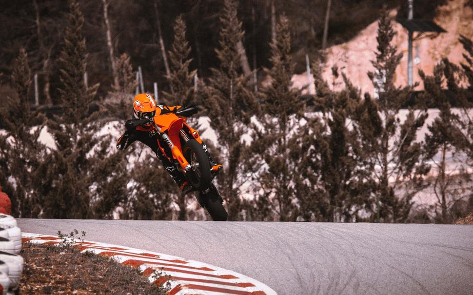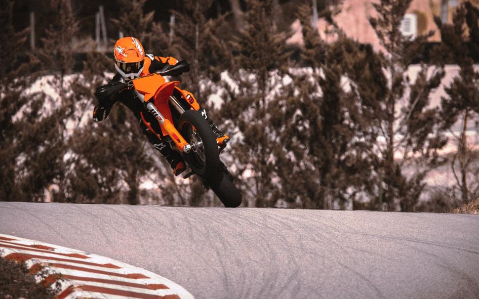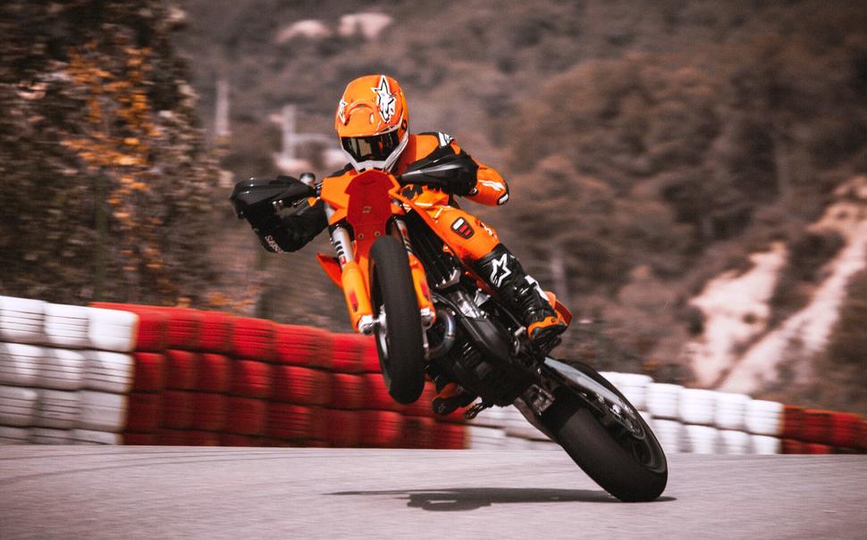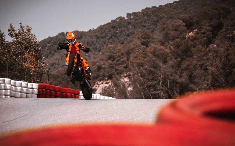 Слоган KTM - "к гонке готов", и это не пустые слова. Большинство, если не все внедорожные модели австрийского бренда действительно можно выставлять на гонку прямо в заводском состоянии. Для всевозможных асфальтовых гонок дела обстоят несколько иначе: есть лимитка KTM RC 8C, но купить его - даже не удача, а привилегия. Были ещё планы выпустить 990 RC R, но его отложили вместе с трековым сородичем 990 RC R Track Edition. А пока, стало быть, остаётся супермото - формально, тоже асфальтовый гоночный снаряд, хоть и на внедорожном шасси.