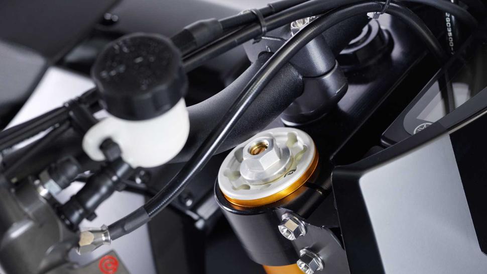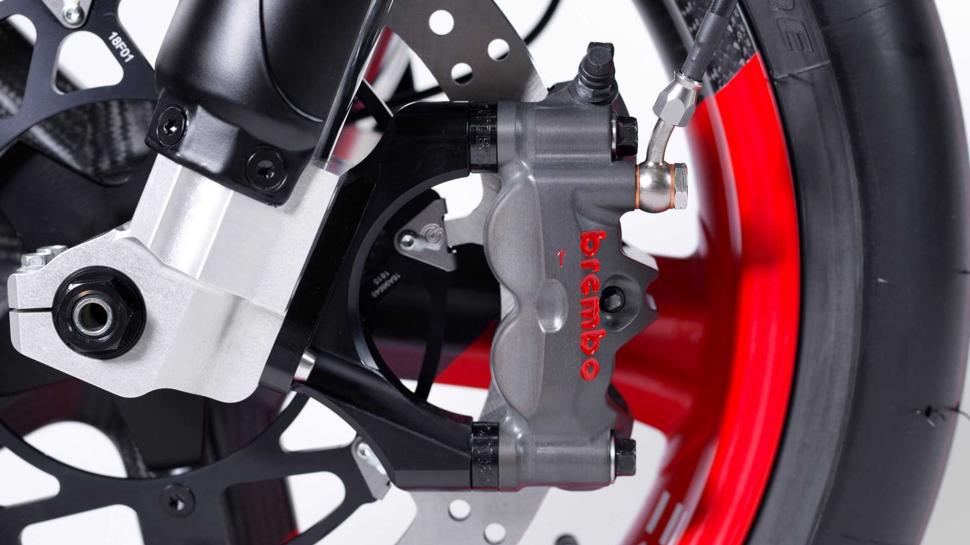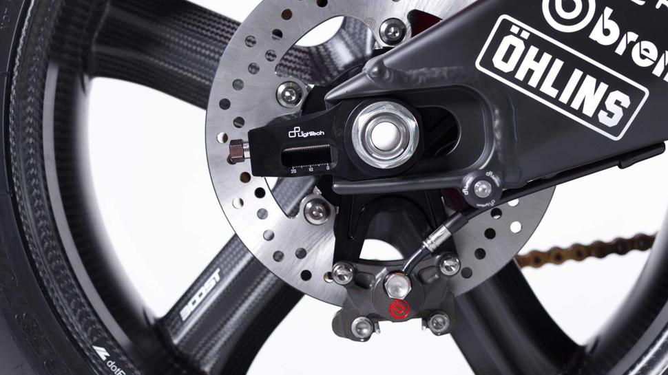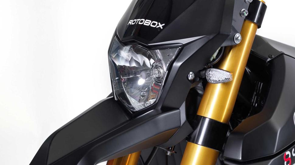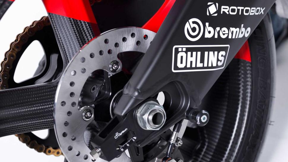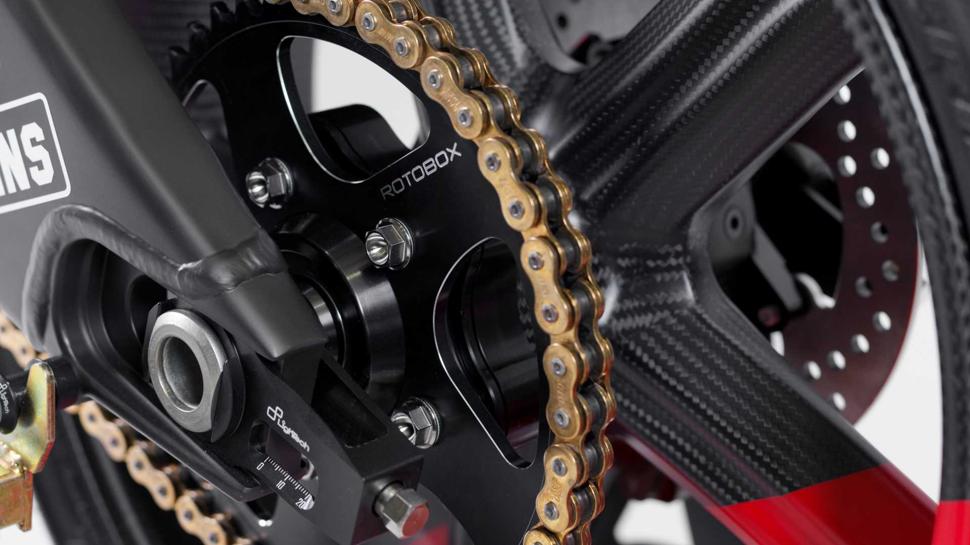 Rotobox заменяет маятник на модифицированный, изначально предназначенный для R6. Это также позволяет установить шину шириной 190 мм на, разумеется, карбоновое колесо Rotobox Boost. Компания также создала звёзды, траверсы и пластик для придания Splice уникального внешнего вида и для максимального соответствия требованиям к мотоциклу для трека. Подвеска для супермото от Ohlins (FG461 спереди и TTX Flow сзади) улучшает управляемость на асфальте, а тормоза Brembo держат аппарат в узде.