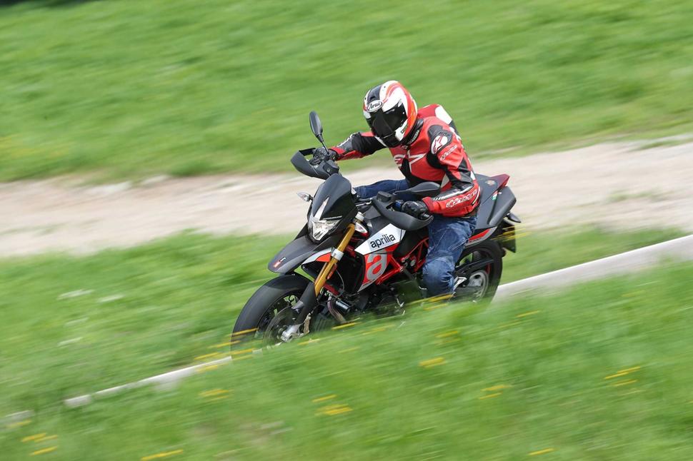 Если говорит о посадке, то она тоже полностью соответствует классу супермото. А большой руль дает пилоту ощущение, что именно он, пилот, доминирует над байком, а не наоборот. Супермото Aprilia Dorsoduro 900 отлично входит в повороты, благодаря большому ходу подвески, нет этих раздражающих рывков. Радиальные тормоза прекрасно справляются со своими обязанностями, а если впереди скользкая дорога, то вы можете положиться на такие электронные функции, как ABC и трекшн-контроль. Кстати, если вы захотите подурачиться, то обе эти функции можно полностью отключить. Преобразованное передаточное соотношение позволило V-образному двигателю объемом 900 куб. см. с двумя цилиндрами засиять во всю мощь. Aprilia Dorsoduro имеет такое же легкое сцепление, как у модели Shiver, и он также плавно набирает обороты. Отклик напоминает другие мотоциклы Aprilia. Но будут ли продажи высоки? Этот рынок очень ограничен, фанаты супермото обязательно обратят внимание на цену Dorsoduro.