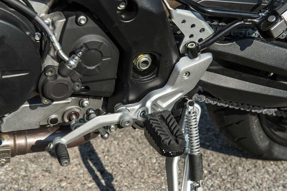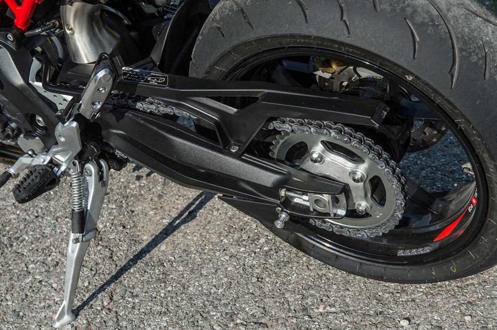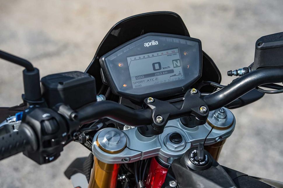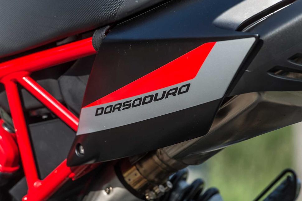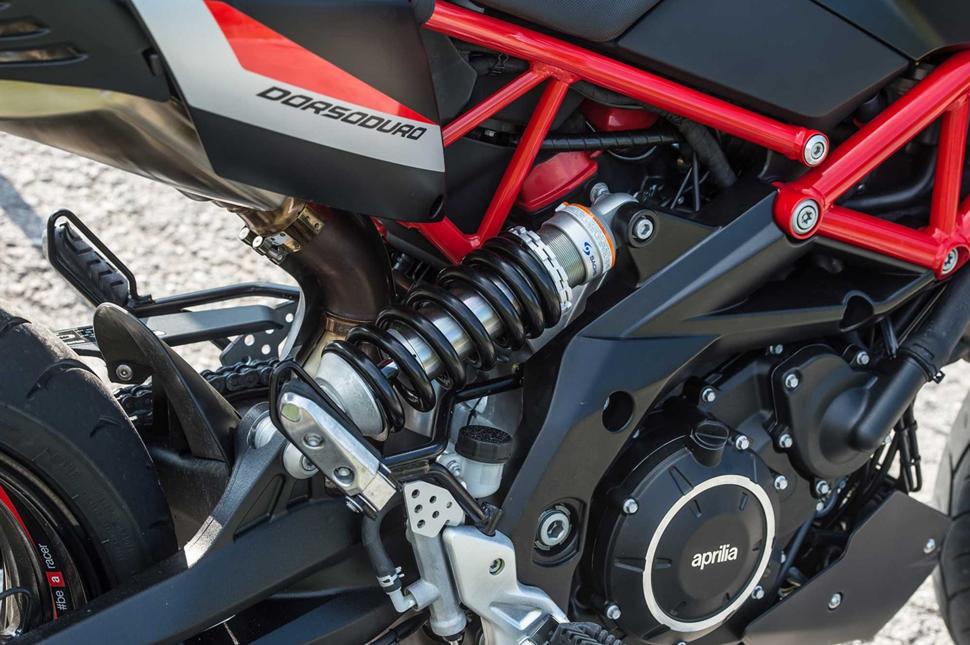 Также мотоцикл теперь оснащен более легкими дисками с тремя спицами, прокаченной подвеской Kayaba и цветной приборной панелью от Tuono. Внешне мотоцикл также был изменен, но во многом он остался все тем же 750-м. Но у Dorsoduro есть одно значительное отличие от Shiver—измененное передаточное соотношение. Инженеры Aprilia убрали один зуб передней звезды, Dorsoduro имеет 15 зубьев вместо 16. Кто-то может подумать, что это бесполезное изменение. Но на деле Dorsoduro теперь летит, как стрела -иначе не скажешь. И ведь в этом вся суть супермото.