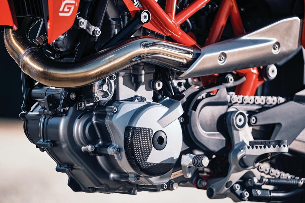 Мотор весит 43,4кг вместе с электростартером, дроссельным узлом, сцеплением и шлангами системы охлаждения. Кроме того, двигатель GasGas SM 700 имеет длинные межсервисные интервалы - 10000км - и весьма эффективно расходует топливо. Высоконагруженные компоненты мотора - коленвал, шатун и поршень - обеспечивают надёжную работу мотора благодаря тщательно продуманной конструкции: коленвал опирается на роликовый подшипник, балансирный вал снижает инерцию и вибрации, а шатун на вкладышах, силуминовый поршень и поршневой палец с алмазоподобным покрытием имеют высокую прочность и долговечность.
