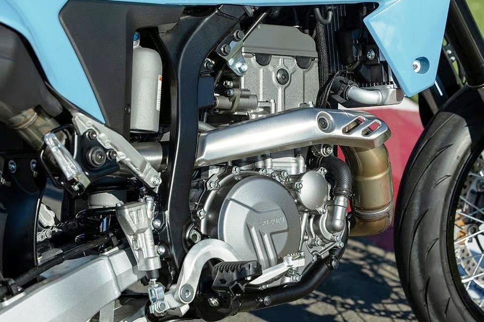 Ужесточение норм по выбросам вынудило Suzuki приостановить выпуск линейки DR-Z400 практически по всему миру. Для возвращения DR-Z на мировую арену японцы сделали ставку на модернизацию 398-кубовой одностволки, и это было не так-то просто. Двигатель имеет ту же архитектуру, что и прошлые DR-Z, но 80% его компонентов либо новые, либо существенно модернизированы, и многие из них направлены на снижение углеродного следа мотоцикла.
