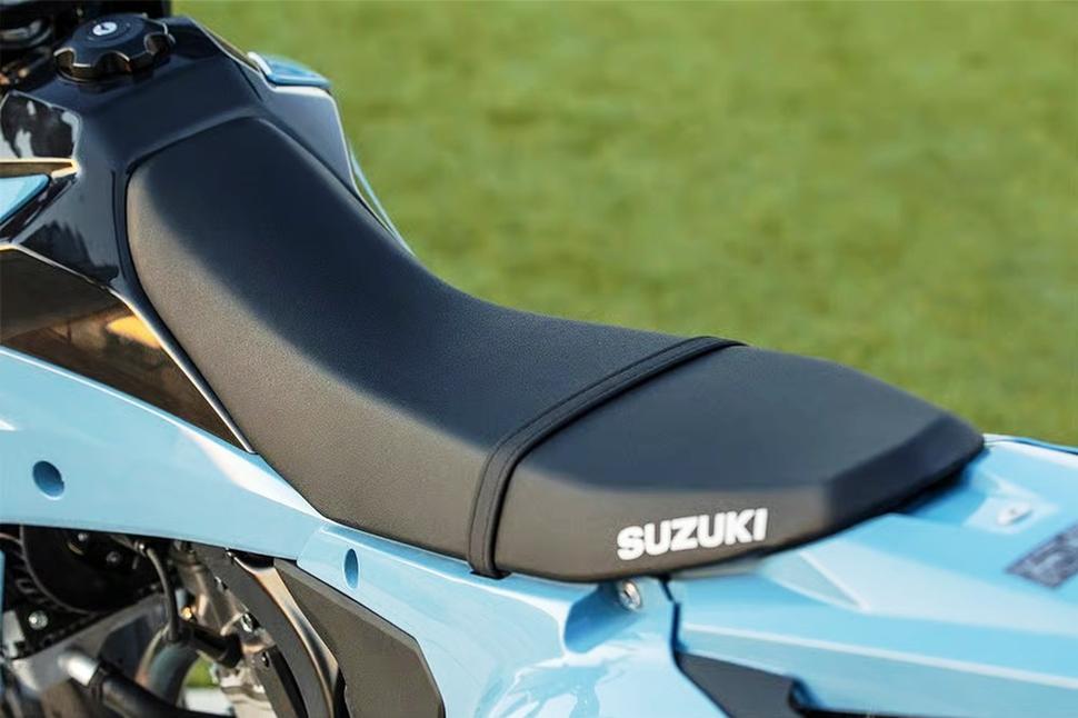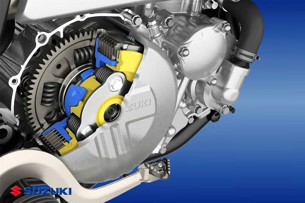 Suzuki по-прежнему устанавливают воздушный короб позади двигателя, но воздух туда теперь поступает через зазор между седлом и хвостом. Даже при прежнем объёме воздушного короба более короткий и широкий впускной патрубок увеличивает пропускную способность впуска. Затем воздух поступает через новую 42-миллиметровую дроссельную заслонку, где смешивается с топливом, подаваемым через 10-струйную форсунку. Система зажигания с двумя свечами обеспечивает более быстрое и эффективное воспламенение топлива благодаря двум фронтам пламени, и всё это позволяет достичь описанных Иннисом целей.