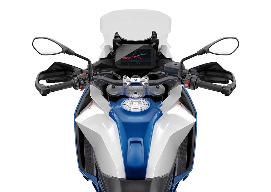 А для хорошего асфальта у XR припасён более высокий, чем раньше, ветровик, тёплые ручки и адаптивный головной свет Headlight Pro. Новая вилка, облегчённые колёса и аккумулятор - общие с R, а вот посадку BMW разнесли: на R она стала более спортивной, а на XR эргономика заточена под путешествия и долгие дни в седле. Руль по-прежнему украшают пульты с фирменным колёсиком навигации, которым управляется приятный и понятный интерфейс TFT-панели.