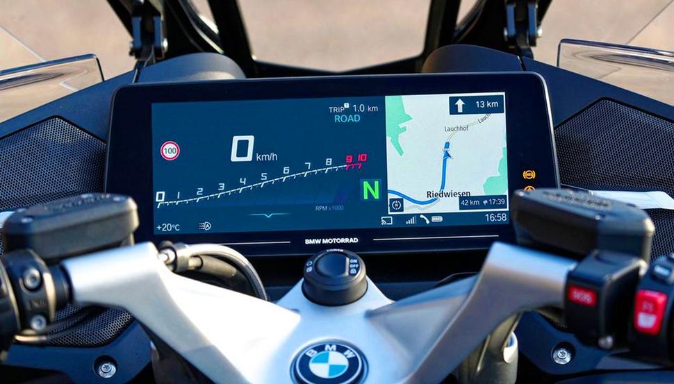 Новый Динамический круиз-контроль (Dynamic Cruise Control) установлен в заводской комплектации, и воздействует не только на дроссельный узел, управляя оборотами двигателя, но также и на тормозную систему, позволяя удерживать выбранную скорость например при движении вниз по склону. Активный круиз-контроль, доступный как опция, добавляет возможность управлять скоростью BMW R 1250 RT, отслеживая попутные транспортные средства и сохраняя выбранную райдером дистанцию до впереди идущего транспорта. Это осуществляется при помощи радарного датчика, данные с которого поступают в ЭБУ двигателя. Отдельный пульт, управляющий круиз-контролем, расположен около левой ручки руля, а иконка, отображающая выбранную дистанцию, появляется на 10,25-дюймовом TFT-дисплее приборной панели. Также дисплей отображает настройки систем безопасности и ассистирования, а в связке со смартфоном отображает навигацию и другие беспроводные функции (типа управления звонками и музыкой). Дисплей превосходно читается в любых условиях освещения, а телефон можно поместить в специальный отсек, куда выведено гнездо USB, а также модуль беспроводной зарядки. Помимо этого, бортовая электроника может включать опциональную аудиосистему и адаптивные диодные фары.