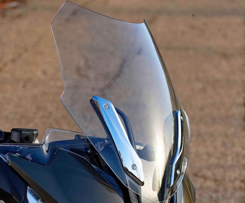 Сбоку новый BMW R 1250 RT кажется довольно изящным, но при взгляде спереди обнаруживается массивный передний обтекатель, обеспечивающий максимальный уровень комфорта в любую погоду и на любой скорости. Для оптимизации обвеса RT был использован аэродинамический туннель, и обтекатель совместно с регулируемым ветровым стеклом перенаправляет турбулентные завихрения от райдера. На высокой скорости ветрозащита BMW R 1250 RT обеспечивает невероятный уровень комфорта, практически полностью отсекая набегающий поток, а при езде в прохладную погоду очень пригодятся подогрев рукояток и сиденья.