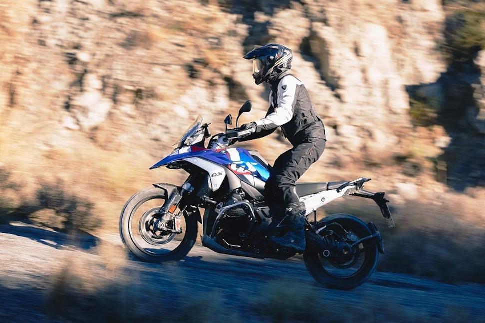 Вряд ли найдётся хоть один владелец GS или другого турэндуро, который не оценил бы уменьшение габаритов нового 1300-го GS. Всё начинается, понятное дело, с мотора, но влияет на весь мотоцикл в целом. На ходу мотор BMW R 1300 GS даёт знакомый, но ощутимо более мощный подрыв на средних оборотах, но после некоторого времени в седле 1300-го возникает ощущение, что он несколько потерял в тяге на низах, сразу после холостых - вероятно, из-за более короткоходной конфигурации мотора. При агрессивной езде мотоцикл ощущается значительно более спортивным, но он не утратил и способности ехать аккуратно и спокойно, а значит, на нём по-прежнему довольно легко ехать по бездорожью, хоть прокрадываясь между камнями, хоть со шлифом и хвостом брызг залетая в повороты. И всё это он делает очень мягко и плавно, мотор практически лишён вибраций.