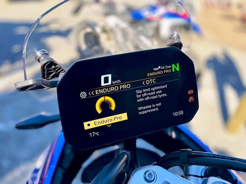 В стандартной версии 1300 GS имеет четыре режима езды: Эко, Дождь, Дорога и Эндуро. Как и раньше, имеется опция Ride Modes Pro, в которую входят Динамичный (для спортивной езды), Динамичный Про (для настраиваемой спортивной езды) и Эндуро Про (для, соответственно, настраиваемой и спортивной внедорожной езды). Отличия между Динамичным и Дорожным режимом весьма ощутимы, и это хорошо: нет смысла делать много режимов езды, когда они почти одинаковые. В Динамичном режиме отклик на газ намного более точный и резкий, что позволяет гораздо быстрее докручивать мотор до отличной тяги на средних оборотах.