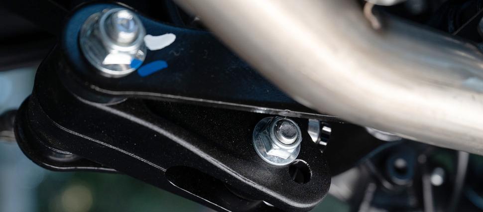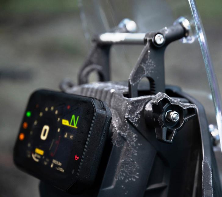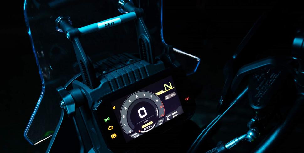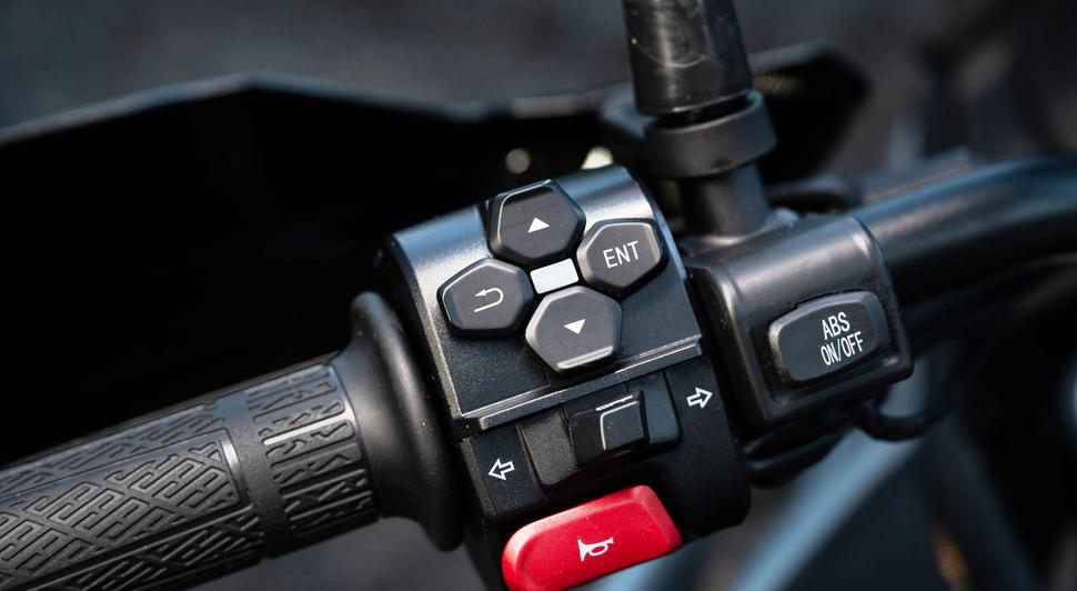 Обе подвески CFMoto 450MT имеют ходы по 200мм, прекрасно отрабатывают любые неровности на реальной дороге и дают отличную обратную связь. Все мотоциклы были со стандартными настройками. Для тех, кому это нужно, есть возможность занизить рычажную систему на 20мм, а также опциональные низкое и высокое сиденья. Трекшн-контроль и отключаемая ABS на заднем колесе управляются очень удобно, так что не нужно быть техническим гением, чтобы пользоваться этим функционалом.