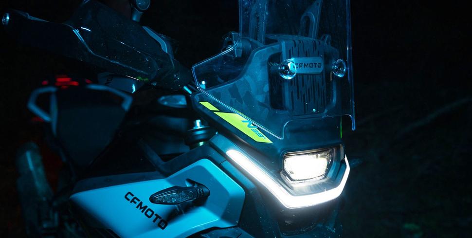 На асфальте CFMoto 450MT показал себя комфортным с первых же минут. Давайте признаем: турэндуро - это очень высокие мотоциклы, и на них почти никому не бывает по-настоящему удобно в этом плане. Но на CFMoto 450MT ноги легко достают до земли, и он не тяжёлый, не норовит прилечь на ногу.