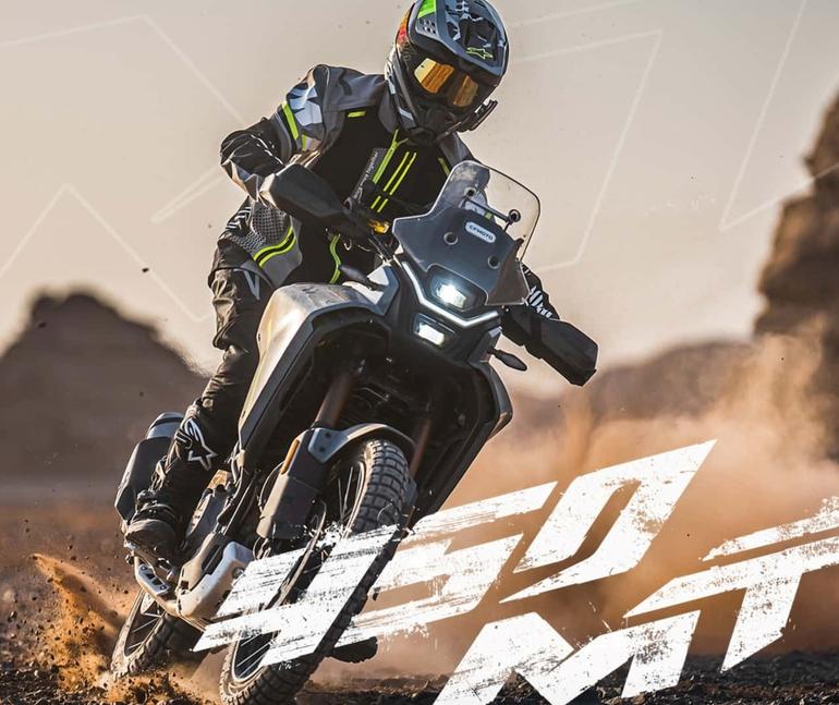 Итак, CFMoto 450MT оснащён тем же двигателем, что и у других представителей 450-й линейки китайского бренда. Это 450-кубовая инжекторная рядная двойка жидкостного охлаждения с 270-градусным коленвалом, способная развивать до 47лс мощности. Компактный мотор установлен в специально созданной раме с улучшенной эргономикой для внедорожной езды, которую дополняет 21-дюймовое переднее и 17-дюймовое заднее колёса.