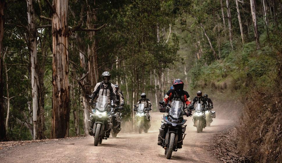 Среди восьмёрки - один полностью снаряжённый экземпляр версии турэндуро со всеми кофрами, ещё шесть таких же адвенчеров, но без кофров, и одна спортивно-туристическая версия. CFMoto 800MT выглядят шикарно, да и сделаны тоже на совесть - производитель в них устранил практически все нарекания на предыдущую модель, 650MT. Помимо внушительного и агрессивного дизайна они ещё и оснащены весьма приличными подвесками, современной полноцветной TFT-панелью с Bluetooth, подогревом ручек и седла, защитой рычагов, противотуманными фарами, круиз-контролем, квикшифтером и отличным 800-кубовым мотором. В общем, очень неплохая заводская комплектация, если разобраться.