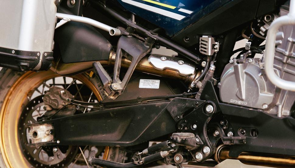 Подвески на CFMoto 800MT существенно лучше, чем у 650MT, с которым невольно сравниваешь все аспекты старшей модели. Старший намного более подготовлен для вседорожных путешествий, и на хорошей резине он вполне неплох на бездоре, если, конечно, не ждать от него уровня лёгких эндуро, но при этом владеть техникой езды.