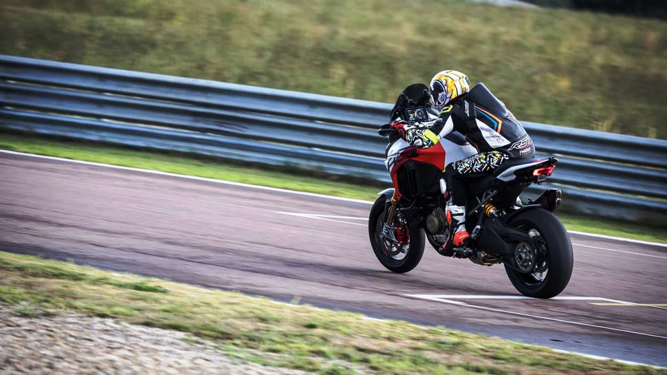 Существенным отличием от обычных Multistrada является 17-е переднее колесо вместо 19-го. Обода ещё и легче на 2,7кг, что прилично снижает неподрессоренную массу, а кроме того, их можно обуть в трековую резину. Например, прямо даже в слики, как на тестовом мотоцикле.
