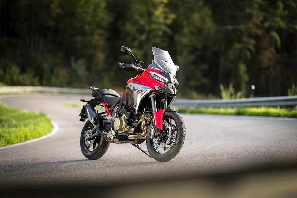 На испытания Ducati предоставили два мотоцикла в разной комплектации: в расцветке Ducati Red на опциональных кованых колёсах и с радарной системой, и в цвете Thrilling Black с адвенчерным комплектом опций, в который входит радар, спицованные колёса, алюминиевые боковые кофры, центральная подставка, подогрев обоих сидений и подогрев ручек. Словом, один V4 S был скомплектован как спорт-турер, а второй - как турэндуро.