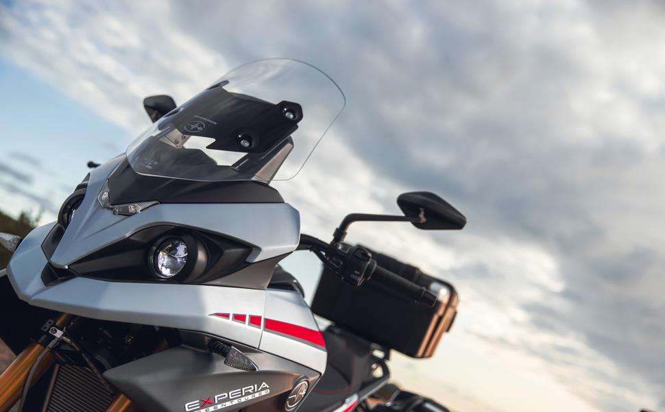 Двигатель Experia вращается в противоположном направлении относительно колеса, тем самым снижая общую инерцию электроцикла. Облицовка обеспечивает превосходную ветрозащиту, не создавая ощущения громоздкости. Багажная система новинки, состоящая из боковых и центрального кофра, вмещает 112 литров багажа и войдёт в комплектацию Launch Edition наряду с подогревом грипс, концами руля и болтами из чёрного алюминевого сплава и легкосплавным дисками с красным акцентами. Два USB-порта на приборной панели дополнены ещё двумя в большом закрывающемся водозащищённом багажном отсеке.