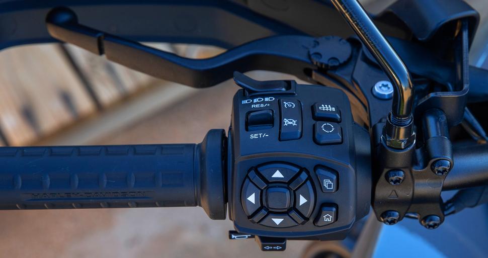 Двигатель работает в одном из пяти режимов езды: Дождевой, Дорожный, Спортивный для асфальта, а также Внедорожный и Внедорожный Плюс для грунта. Во всех этих режимах используется шестиосевое устройство измерения инерции для работы наклонных ABS и трекшн-контроля, а также для подстройки отклика на газ. Harley называют эти системы Cornering Enhanced Traction Control System (C-TCS, в переводе нечто вроде система трекшн-контроля с улучшенной работой в наклоне) и Cornering Enhanced Linked Braking System (C-ELB, система комбинированных тормозов с улучшенной работой в наклоне). Тормозная система при помощи электроники связывает два моноблочных четырёхпоршневых суппорта Brembo на переднем колесе с однопоршневым Brembo на заднем. Чем сильнее выжимается педаль или рычаг тормоза, тем сильнее второй контур помогает первому (например лёгкое нажатие на педаль заднего тормоза приводит только задний суппорт, а сильное добавляет усилия на передние). Связь между контурами полностью отключается в режиме езды Внедорожный Плюс.