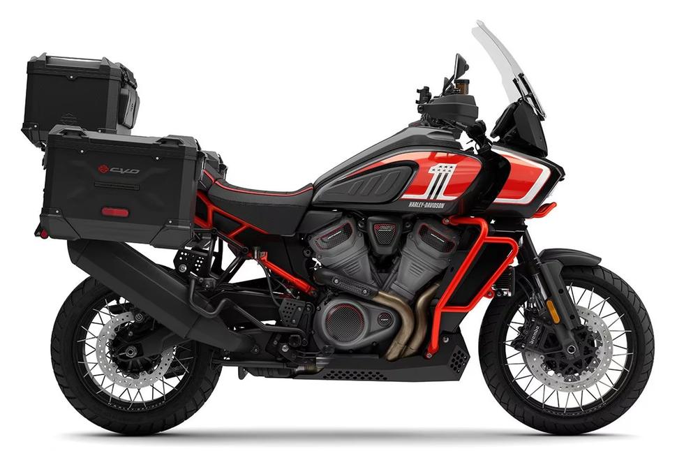 HD оснастили CVO-версию Pan America квикшифтером Screamin’ Eagle, дополнительными диодными фарами, алюминиевой защитной пластиной, бескамерными спицованными колёсами, а также алюминиевыми кофрами, боковыми и центральным.