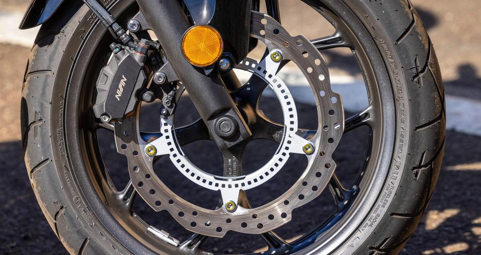 Оригинальная версия NC750X была оснащена более длинноходными подвесками, чем "дорожная" NC750S, но сами эти подвески не особо хвалили. С 2018 года X получила 41-ю вилку Showa Dual Bending Valve в пару к моноамортизатору рычажной подвески Pro-Link. Из регулировок доступен только преднатяг пружины задней подвески, а остальное, по замыслу производителя, и в стоке работает как надо - вот вам 12см хода обеих подвесок, ни в чём себе не отказывайте. Причём 700X (которая существовала до 2014 года) имела более длинноходные подвески (на 3 сантиметра), но меньшая высота по седлу рестайла 2018 года - это ценнее.