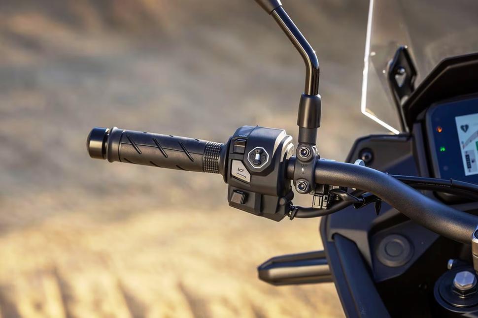 Благодаря электронному газу на Honda Transalp 2025 реализовано пять режимов езды. В Пользовательском можно настроить мощность двигателя (4 ступени), торможение двигателем (3 ступени), ABS (две ступени плюс отключение задней) и трекшн-контроль (5 ступеней). Вилли-контроль встроен в трекшн-контроль и может быть полностью отключен вместе с ним. Большой недостаток этой модели - отсутствие круиз-контроля, который по сути является чисто программной функцией, потому что вся аппаратура для его работы на мотоцикле уже есть.