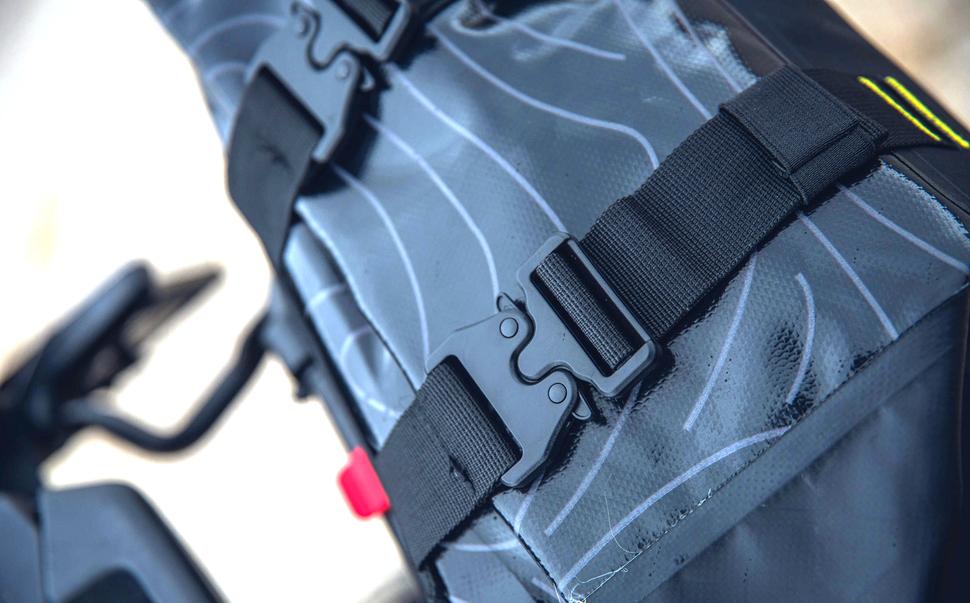 Ещё один момент касается мягкой багажной системы, которая начала разъезжаться по верхнему шву. Понятно, что это не случайность, потому что эта проблема возникла на всех тестовых мотоциклах. Металлические застёжки поначалу работали довольно мягко, но потом, когда в них набилась пыль, стали более тугими. По словам представителя Husqvarna, это предварительная версия багажа, вот только в обзорах на багажные системы для Norden были ровно такие же жалобы.