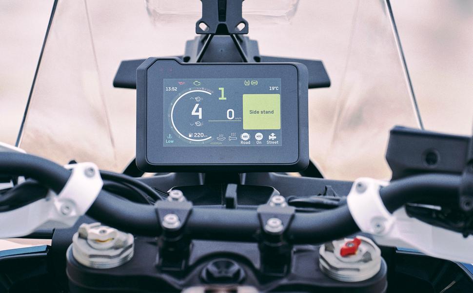 Помимо выбора варианта работы ABS, режим езды Husqvarna Norden 901 Expedition позволяет на ходу настраивать трекшн-контроль (9 ступеней) и характер отклика на ручку газа (3 варианта). Именно этот режим и новые подвески - самое лучшее в модели Expedition. Ну а из плохих моментов стоит упомянуть разве что высокое ветровое стекло - его бы стоило сделать покороче, чтобы больше не получать по подбородку.