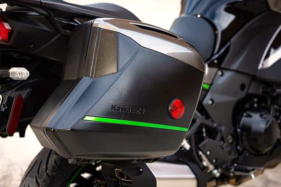 Kawasaki повысили передаточные числа трансмиссии для пятой и шестой скоростей, снизив тем самым обороты примерно на 7% при езде на 100км/ч на шестой. Теперь рядная четвёрка на этой скорости крутится примерно на 4000об/мин, а значит, есть приличный запас на обгон. Электронный круиз-контроль, тёплые ручки, электронные подвески и двунаправленный квикшифтер очень украшают пролетающие километры, позволяя путешествовать с комфортом и даже каким-то уютом.