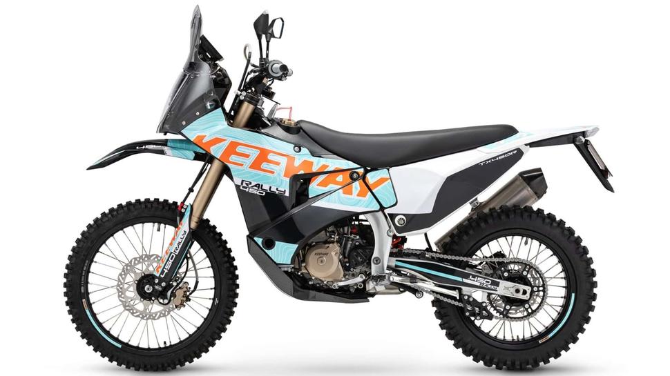 Доказательством этому стало мотошоу EICMA 2023, где было представлено множество новых турэндуро, явно вдохновлённых дакаровскими мотоциклами. Среди них - такие модели, как Kove 450 Rally и CFMoto 450MT, а также Keeway TX450R. Keeway - это один из брендов, принадлежащих китайскому мотогиганту Qianjiang Motors, также известному как QJ Motor, и их новинка соответствует той же формуле, что и другие раллийные турэндуро - лёгкий и достаточно компактный корпус, внедорожные подвески и большой одноцилиндровый мотор 450-кубового класса.