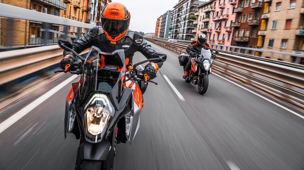Вот остальная информация: KTM устанавливает на 1290 Super Duke GT 2019 года обновлённый V-Twin объёмом 1301 куб. см с титановыми клапанами и впускным резонатором для увеличения мощности. Двигатель оснащён парой дроссельных заслонок от Keihin размером 56 мм, а блок управления двигателем в сцепке с электронной ручкой газа управляет подачей топлива и обеспечивает работу функций трекшн-контроля с отслеживанием угла наклона и режимов езды, управляющих откликом двигателя на ручку газа исходя из условий езды и навыков ездока. Не поймите неправильно: эти функции не заменяют навыки райдера, а только помогают не перевернуть мотоцикл в процессе приобретения этих навыков.
