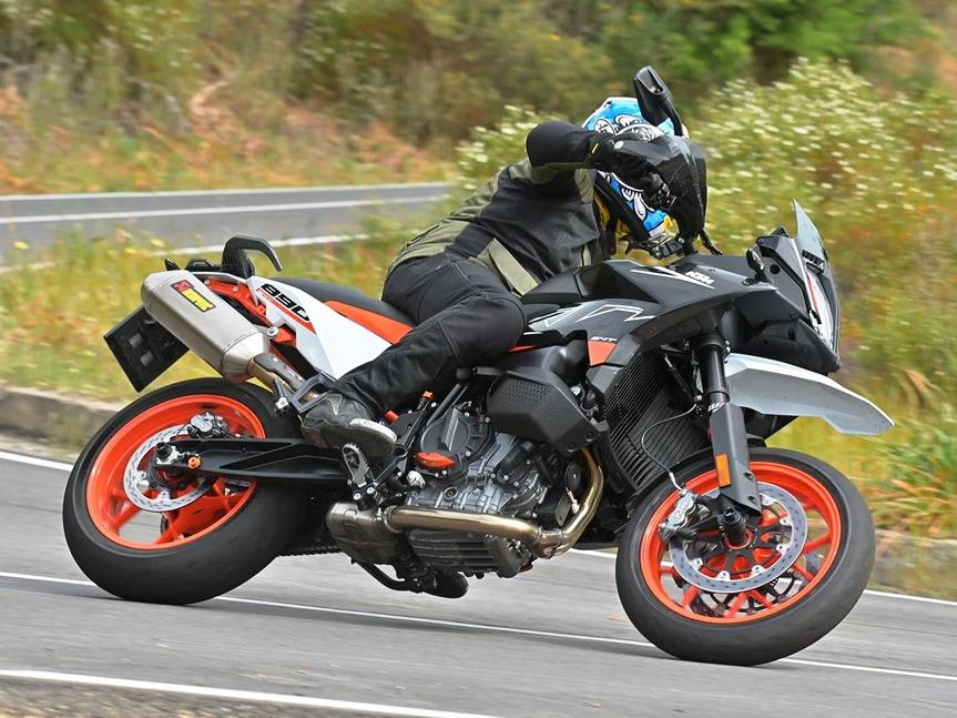 Как и оригинальный SMT, удостоившийся статуса культового около десяти лет назад, он пронизан гоночным духом и одновременно жаждой дальних поездок. Однако, теперь он оснащён вторым поколением 889-кубового варианта многоцелевого двухцилиндрового рядника LC8c, который в той или иной форме установливается на всё большее число оранжевых среднекубатурников, а также на некоторые Husqvarna и CFMoto. Следующий, надо полагать, GasGas?