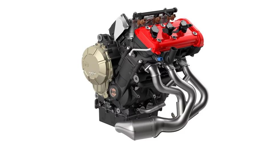 Новая 931-кубовая рядная тройка жидкостного охлаждения с балансирным валом имеет четыре клапана на цилиндр и два верхних распредвала, а клапана приводятся через пальцы-толкатели с алмазоподобным покрытием DLC. Диаметр и ход кованых Т-образных поршней равны 81 и 60,2мм, а степень сжатия достигает 13,4:1. Как и все рядные тройки последнего поколения в арсенале MV Agusta, мотор Enduro оснащён коленвалом, вращающимся в противоположном направлении относительно колёс, что снижает гироскопический эффект и улучшает управляемость. Двигатель не только чрезвычайно компактный, но и весит всего 57кг.